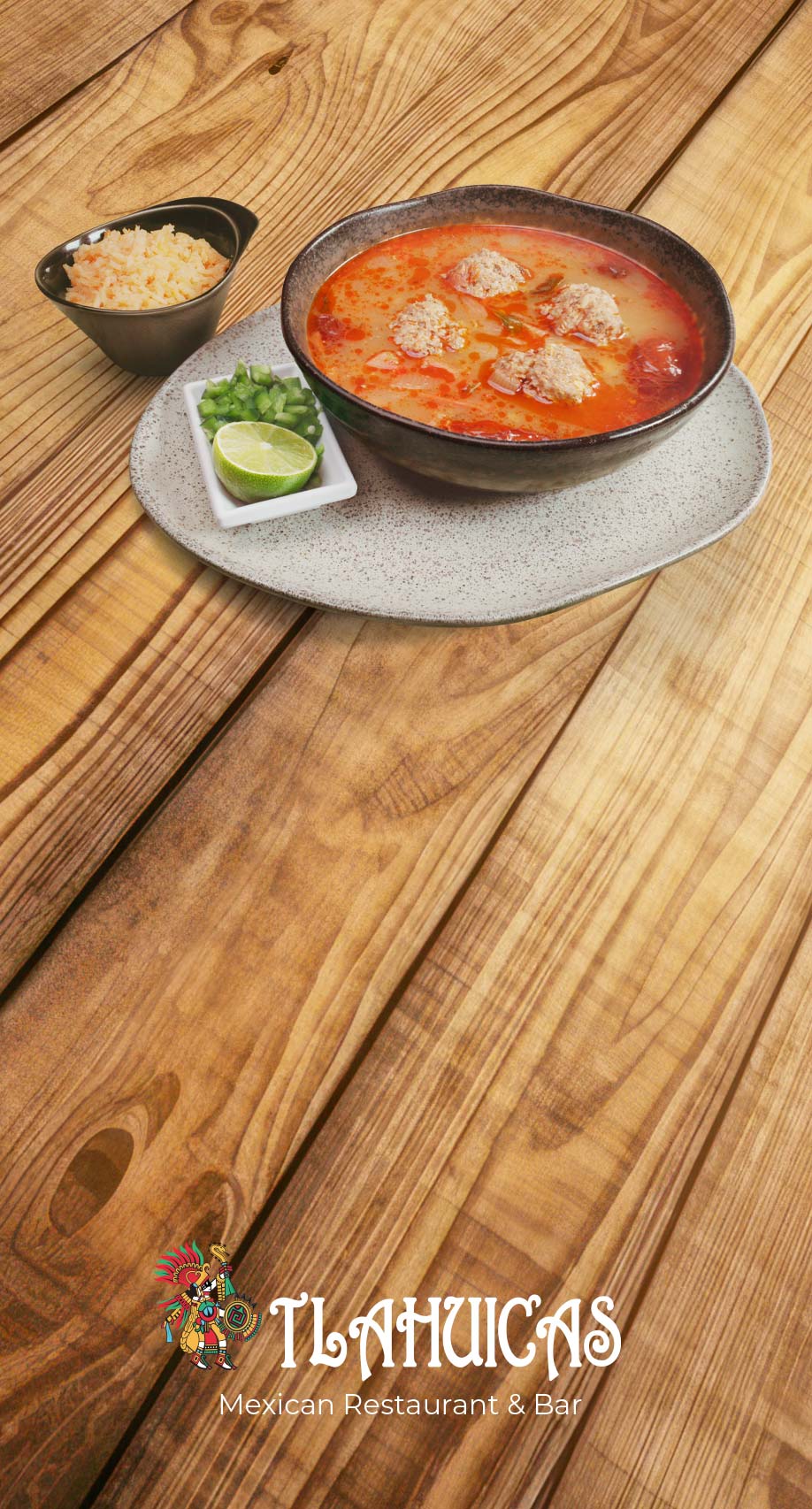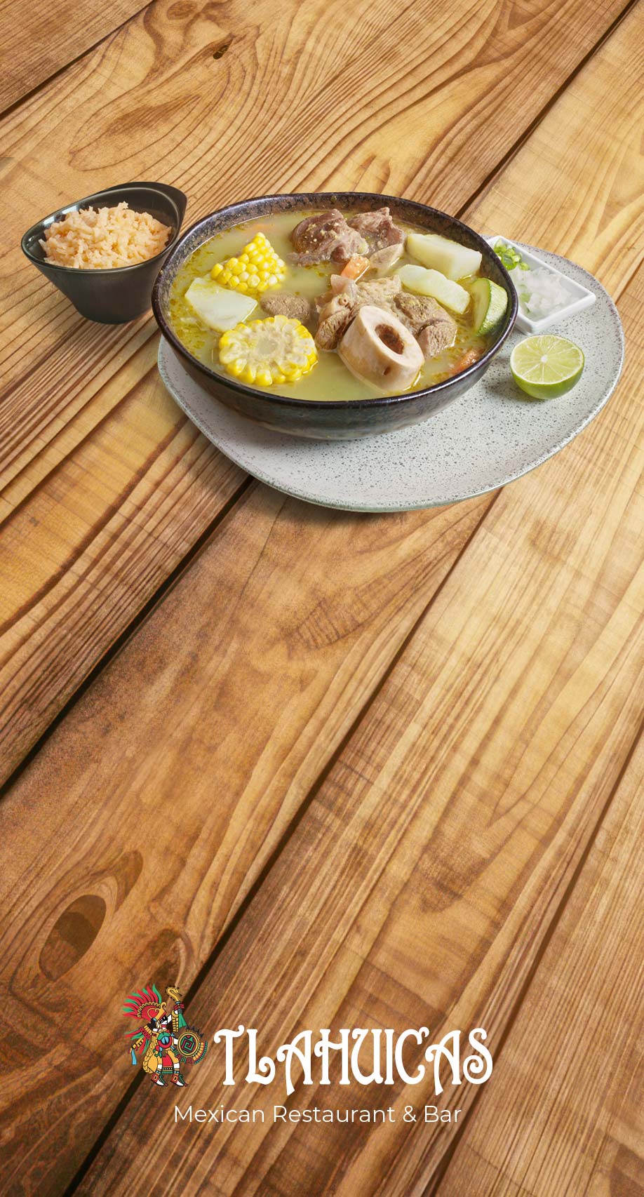 Caldo de ResCorn, zucchini, carrot, potato, rice, and lime$17CaldosPancitaBeef tripe and hominy served with chickpeas, onion, cilantro, lime, and four tortillas.$17CaldosAlbóndigasBeef meatballs served with rice, chopped chili, lime, and four tortillas$17CaldosPozole MorelosHominy and pork served with two hard-boiled eggs, two crispy tacos,