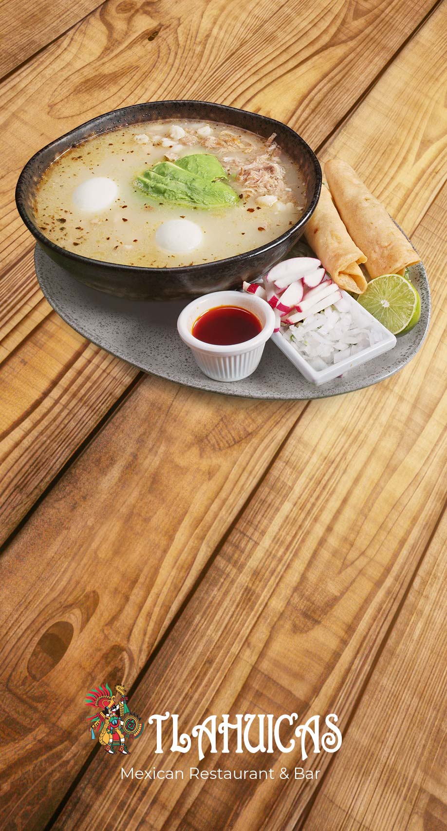 pork cracklings, avocado, radishes, onion, lime, and a spicy sauce.$17CaldosCaldosDrinksDessertsMenuBreakfastHouse SpecialSeafoodTacos y másAppetizerdehazeEspañolcalendar_today Book via OpenTablephone +1 987 654 321